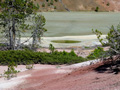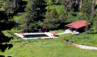The next day, Tue, 7/9, Drakesbad was my destination. After descending to Hwy 36 I found an enjoyable food cache with drinks and fruits supplied by a kind trail angel from Chester. The trail continued with many ups and downs to an interesting volcanic area near Drakesbad. There were hot lakes and bubbling and steaming mud ponts with colors ranging from grey to green to red. Then the trail drops into a green valley where a resort, cabins and a hot spring-fed pool are located. Up-scale Drakesbad is mostly visited by vacationers with fancy cars and less by PCT hikers. Since they had one last room available I splurged and stayed overnight which included a fancy dinner and breakfast and of course a swim in the hot pool. But my impression was that I belonged on the trail rather than a fancy resort.
