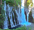 On Sat, 7/13, I left at 5:45 am to have breakfast at Burney Falls State Park. It turned out that there was no food service, just a cold burrito for purchase and a microwave to heat it. But I was glad that the store had my resupply parcel. For a while it was a nice place for a break, take a shower and have an ice cream and meet other thru hikers but in the afternoon most of us went back to the trail. The park was a geologically interesting place: One bridge crossed a dry streambed, a second bridge crossing further down over the same streambed had a fully running stream. The stream vanished in porous lava and reappeared as a powerful spring from a less porous layer. The creek dropped off a cliff as a powerful waterfall. Further downstream it was dammed up and produced hydroelectric power. In the afternoon the trail ascended and by 7 pm I reached a small stream, Peavine Creek (mi 1437), where I decided to camp.