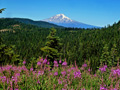 On Thur, 7/11, I started at 6 am and reached Old Station in time for breakfast. It is a village spread out between a trailer park, post office and gas station/minimart. The latter even had Heet, lots of resupplies as well as water needed for the upcoming long, dry Hat Creek Rim. I carried about 5.5 l up to the ridge which has no water. I reached the plateau at 11 am. The trail is near the drop-off of a large lava flow. There was a nice breeze which made the heat and lack of shade bearable. The view was wonderful and one could now see two large volcanoes, Mt Lassen and Mt Shasta. There was still much evidence of the Hat Creek fire from 2009. But between burnt trees and bushes some beautiful wildflowers were blooming.