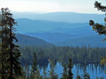 Fri, 7/19, I left at 6:15 am from my campsite at mi 1535. The trail passed Toad Lake, Porcupine Lake and Deadfall Lake, where I stopped for lunch and had a short dip into the lake. There was a fine spring at mi 1545 and no water for the next 7 miles while the trail contoured around a large cirque. By 5 pm I reached Bull Lake (mi 1554) and decided for an early camp and swim in this pretty lake. The lake was below the PCT and reached by a XC descent. The best moment came next morning, Sat, 7/20, when at sunrise the mountain ridge turned red and mirrored in the quiet water of the lake. The day's hike was deja-vue: The trail meanders around mountain ranges, one refills water from springs when available, an occasional road crossing such as Hwy 3 at Scott Mtn Summit, where I had lunch at a big parking lot. While I ate travelers stopped by and asked whether I was hiking the PCT. As a conversation started, I mentioned to be short in water for lunch, and spontaneously a family offered not only water but also juice, cookies and Hershey bars. The mother of the family said she read the book "Wild"; thank you, Sheryl. In the afternoon I continued along the trail, stopping at various water sources and ending the day after 23 mi near Eagle Creek, mi 1577.