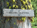 On Sat, 7/27, I saw the brown clouds from wildfires over mountains and valleys. It drifted over my ridge too and the air smelled from it. Cows in the meadows stood stoically in the smoke. In the forest the smoke made sunrays visible. I refilled fresh spring water at mi 1695. There was a 50 k mountain run on the PCT and many long distance runners passed us. We gave them way and were rewarded by nice treats at their supply tents. In the afternoon, as the race ended I could have as much as wanted from their left-over sandwiches, fruits and softdrinks. What a treat on the trail! But the hilight of the day was a trail marker at about mi 1700, saying simply "Oregon-California". It gives a mixed feeling of pride for the accomplished hike and of excitement for the adventures in the new state. After signing a register I hiked now in Oregon. Of course the scenery was still the same: Pretty hills filled with springs, green meadows with wildflowers, mountains and valleys till the horizon. Due to the vicinity of a big road (I-5) and city (Ashland) there were many dayhikers on the trail. After 22 mi this day I camped one more time on the trail at mi 1710. But next day I would hike to Calahans on Interstate 5.