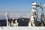 From the summit one has a nice view over cloud-covered Central Valley to the Tehachapies and the San Rafaels. Likewise one can see the snow-covered peaks of the higher Sierra range to the east. If it was not for the difficult access there would be plenty of ski terrain to explore. After a good storm the Southern Sierra is worth an exploration.