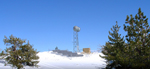 After a break I proceeded the usual way up to Mt Pinos. There was abundant snow, mostly hard packed winter snow. The wind was blowing in the open fields but it was sunny. I was expecting to see some other skiers but it was eerily empty. No skiers, no snowshoers, no hikers anywhere on Mt. Pinos! Near the microwave tower I had a brief snack and took pictures of the snow covered mountains, the cloud covered Central Valley and nearby Mt Abel. Then I proceeded to the Condor Viewpoint from where one has a great view over Loockwood Valley and other snow covered ranges near Ojai. This was the scene of the large Zaca fire in 2007. Some controlled burning was still going on.