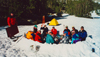 The Baboon Lks were partially open and I could not resist to try out my fishing gear. Two trout later we had a long discussion about our planned basecamp at Sunset Lke (11,464'). The vote was for staying at the sheltered and scenic Baboon Lks instead of a barren, frozen, high-altitude lake. Since this was further from our peaks we agreed on an Alpine start next day. So we had a long afternoon free for skiing the local slopes and reviewing some mountaineering skills. Mark held a practice session for the proper use of ice axe and crampons, I set up snow anchors with skis, everyone tied into the rope and was belayed. Later we climbed on the ridge between Sunset and Baboon and carved many pretty turns into the soft spring snow.