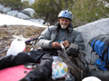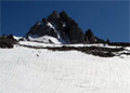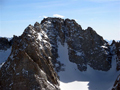 Haeckel and WallaceMay 28-29, 2007Alvin WalterOver Memorial day weekend, Ellen and I decided to drive up to Lake Sabrina and make the best of whatever skiing was still available. From the road we could see a nice snowfield on Mt Haeckel. We hiked past Blue Lake and enjoyed the view of Peak 12,464 that I skied a few weeks before. By late evening we made it up to Midnight Lake where we had a very nice view of Mt Darwin and a couloir that I named Midnight Couloir. Looking down on Midnight Lake from the top of Midnight Couloir, there were only my tracks coming up it. From the top of Mt Wallace at 13,377', I enjoyed the view of Mt Haeckel in front of Mt Darwin, Lake Sabrina over the saddle, Clyde Spires and Mt Powell to the south, and Mt Lamarck to the North. Back down at a saddle, I looked back up at Mt Wallace, then began my first tracks on the snowfield below and came to a view of Midnight Lake with all of its drainages below. Looking back up and at Midnight Couloir after I layed some tracks in it with a morning view also, including Mt Darwin in the morning. A sign we found on our way out and an overview of the couloir and Mt Haeckel. A nice series of action shots Ellen took of me as I skied Midnight Couloir. It was a great way to finish out the ski season for us -- at least for the time being. Greetings, Alvin.