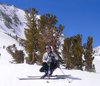 We met at the end of the plowed Rock Creek road above Rock Creek Lake a little after 8AM on a gorgeous sunny day. The group consisted of John Anderson, Scott Koepke, Dennis Landin, Keith Martin (assistant leader), Vince Shulda, Mike Seiffert, Jan St. Amand, and myself. Our plan was to ski in with backpacks on the snow-covered road to Mosquito Flat campground (inundated by snow) and then make our way into the John Muir Wilderness and camp on the east side of Box Lake. Views of the big peaks in the range were everywhere - Mt. Morgan, Bear Creek Spire, Mt. Dade, the Hourglass Couloir, and Mt. Abbot.