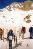 The bowls on the west flank of Mt. Morgan above our camp looked inviting, and we figured the snow would be reasonably firm on the west and northwest aspects. We pass through beautiful bowls with a couple of steep pitches en route to an 11,200' rockpile with spectacular views of Treasure Peak and the Hourglass, Mount Abbot and Dade and much of the Little Lakes Valley below. The snow was getting quite soft so after only a short break, we whooped it up as we enjoyed turn after turn in the spring snow down to our camp and returned by 2:30. While the rest of us loafed in the shade back at camp to escape the searing spring heat, Keith went out for more turns above an unnamed lake to the east.