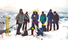 April 2 (by Nancy Gordon): Six of us converged at LAX, boarded our Delta flight, and were airborne at 0710 headed for Salt Lake City. There, we joined Lisa and Reed, our San Diego contingent. Our flight continued. We arrived in Calgary, Alberta, Canada, at 1130; passed through customs; and, due to Don's incredible efficiency, soon were loading our gear in and on top of a GMC Safari van, which immediately brought our group much closer. The Transcanadian Highway led us through the magnificent, soaring Canadian Rockies. We stopped for dinner in Golden, located in the Columbia Valley. This city has a sawmill, a railroad station, and an interesting history as a residence for Swiss mountain guides. Approaching the Selkirks created shivers of delight and anticipation. We pulled into the Best Western in Revelstoke, British Columbia, at 1900 hours, having endured that indignant ordeal of fanny fatigue for 410 kilometers. April 3 (by Don Pies): It's an alpine start. Well, at least the giggling has started at 0400. Numerous body parts and joints are taped and wrapped to protect against re-injuring wounds inflicted over more than 100 years of accumulated self-abuse by our group of eight starry-eyed skiers. I feel like a pro (This is Don's second Selkirk experience!), this time I remembered to pack the full bottle of Advil. Something doesn't seem right; we're getting all expedition minded, yet we're comfortably sitting here in a motel. Breakfast at 0630, and a 0700 shuttle pick-up for the helicopter departure drags on to 0900 as the clouds hover low over our heads.