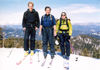 On Saturday morning March 22, four skiers (participants Leslie Hofherr and Heiko Knapp, assistant leader Reiner Stenzel and provisional leader Mike McDermitt) met in the parking lot of the Ponderosa Lodge under clear skies. Just before 9am we began skiing from the snow-covered and snowmobile-groomed forest road just across the street (marked point 7157-T on the 7.5 minute Sentinel Peak topo). We skied westward along this road for about _ mile before making a left onto another snowmobile-groomed road (marked point 7208-T on the topo) and proceeding south about 0.1 mile, across a small stream and around a small bend. At this point we left the road and proceeded cross-country in a roughly southwesterly direction, along a modest ridge then upslope to a bench at 7840+ above the north fork of Peppermint Creek. There was some brush at first but well before reaching the bench the forest thinned out. After a break, we skied down in a southwest direction, dropping to about 7700', and crossed first a small tributary stream and then Peppermint Creek north fork. From here we skinned up the more northerly of the two arms of Slate Mountain which radiate eastward from below the summit, generally staying on the north side of the ridge. We made good progress and soon reached a bench at 8280+'. Here we took a break in warm sun and enjoyed vistas which were beginning to open up to the Mineral King area and to peaks in the eastern Sierra. With Heiko's prodding we got going again and made rapid progress to the bench at 8920+.