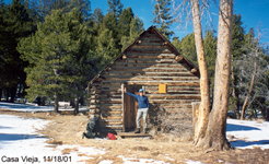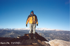 Another peak we hiked together was Kern Peak, in the middle of the Southern Sierra N.F. It was in November, some snow on the ground and very cold and windy on the peak. We passed Casa Vieja which was closed. After a long hike we reached the Kern Peak. There was a platform on the summit, probably used for communication purposes. Even bundled up one could not stand it for too long on this exposed peak. Thus we signed in and turned around. On the way back the sun warmed us and the trees provided some wind shade. This hike should not be done in a real winter storm. |