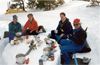 The group summited Rogers Peak, and we skied to the saddle between it and Bennet Peak, where we made camp. After we set up camp and dug a community kitchen, Reiner held a ski clinic, and we spent the rest of the afternoon skiing some of the lumps around the camp area. Larry and Barbee are fairly new on telemark skis, and Bill was trying to break in his new Randonne' skis, or visa versa. The happy hour was welcomed, as the snow had turned to breakable crust, and everyone was feeling a little crusty toward skiing by then.