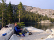 After a last ascent over the pass into Thompson Canyon we were back at camp by 5pm. Bahram cooked another fine dinner. I introduced him to miners lettuce soup and pennyroyal tea. It was a long but successful climbing day. On Fri, 8/1/08, we hiked out of Thompson Canyon into Kerrick Mdw, followed the trail to Peeler Lake where we had a nice break and dip. From then on it was all downhill till Barney lake where we had a second lunch break.