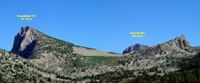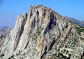By 11am we had our camp established and were heading up to Hawksbeak. One follows up the canyon and ascends the eastern slopes which are unfortunately sandy and covered with low pine trees. On the return we found a use trail which avoids the bushwhacking. The upper part of the mountain is an enjoyable cl 3 climb. There was no summit register on this nice peak. The views were splendid, especially to nearby peaks like Tower and Ehrnbeck.