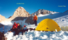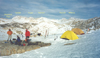 On Fri, 5/5, we had the first day without sun in the morning. It was humid and warm and clouds were rising from the West. The other group came over to discuss how to ascend the glaciated pass. We offered to try it first and they could follow us. Later we learned that they were all distinguished officials of the University of California.