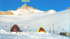 The creek flows partly below the snow, partly breaks through the snow, and sometimes gushes down an icy waterfall. Milestone Pass looks more intimidating than it actually is. To keep our tradition we camped below the pass to climb it in the morning. By 4:30 pm we spotted a small plateau for a perfect campsite. We cooked on a dry flat rock and overlooked the valley like marmots. High cirrus clouds moved in producing a ring around the sun, a typical sign that a front is moving in.