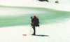 We then contoured around the rock West of Glacier Lake and ascended Lion Lake Pass (11,610'). Below the rock the slopes were steep and hard frozen, requiring boot or ski crampons to avoid a long fall into Cloud Cyn. From Lion Lake Pass we skied down SE staying above Lion Lke (11,005') and headed up Lion Rock Pass (11,800'), 0.4 mi E of Lion Rock. Climbing a third pass this day became tiring, especially by midday in a bowl of intense sunlight without a breeze. In spite of ample sunscreen, chapstic and zinc, Eric got sunburned on the tongue.