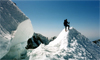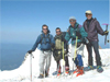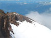 From the end of the lift we climbed/skied up the Palmer Glacier to the "Hogback" and left the skis where the steep ascent to the summit ridge starts. Near the end of the Hogback lies the infamous crevasse into which some climbers have fallen. One has to climb around it and above it on a 35-deg slope past the Crater Rock and through the steep Pearly Gate to the summit ridge. But with ice axe and crampons and good footsteps in excellent weather it was an easy ascent. The volcanic rocks were all covered with frosty snow. Sulfuric smell was in the air. Finally, on the 11,239' summit one had the rewarding feeling to be on a significant peak, Oregon's highest. The view reached to at least 7 other volcanoes, Rainier, Helens, Adams, Jefferson and Three Sisters.
