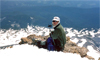 Reed's report on his and Diann's adventures - Diann and I made it back home, alive and well (7-10-03). Diann has a sister who owns a cabin (actually a very nice house) near Mt. Bachelor. We went there for several days. We cycled part of the Cascades Lakes Highway, but it was just too cold and rainy. Then we decided to go up to try Mt. Adams, something I have wanted to do for a long time. We first went to see Diann's sister in Portland. We again waited a couple of days for better weather. Finally the weather improved and we set out for Mt. Adams. The forest service road was now completely open to Cold Springs campground on the south side of Mt. Adams. We also had to pay for climbing permits ($15 apiece). I insisted on an early start and set the alarm for 3am. We were on the trail just before 4am. The well-worn trail was easy to follow in the pre-dawn darkness. We hit continuous snow just as dawn was breaking. The South Shoulder Route is very straightforward. You reach a flat bench at 9,000ft and then go up an ever-steepening slope to the 11,700ft false summit. There you get the very disappointing view of the true summit, still 600ft higher and a half mile away. We made the true summit by 10am. There is a building at the top, with a few of the wooden beams sticking out of the snow there. Hard to believe they used to mine sulfur at the summit and used mules to carry it down.
