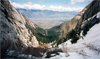 The morning of Sun, 5/3, was perfect without a cloud in sight. With ice axe and crampons I climbed the South ridge of Trojan Pk (4,251 m or 13,947'). It was a pleasure to find the peak register and to place the first signature in 1998. The view was outstanding, but puffy clouds were rising again out of Owens Valley. To the North was Big Willi (14,370') which we missed to ski. Actually, the upper South facing slopes were all dry and it would have been just a climb which I had done 10 years ago. Because of the weather I rushed back to camp, packed out and was ready to continue by 10 am.