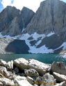 This night, unfortunately, we had no tea, as we didn't collect snow for water, as we could have done. And it was a night full of winds gusts. My space blanket, unfortunately, got ripped by my boots & rocks. Fortunately, Verdi had lent me a rain poncho when we started. Aysel & I both spent a long, cold night. It was the longest night of my life, in fact! Scott noticed that the water in his bottle was frozen even! But we survived, & this was my very first time to sleep on top of something 14,000' high!