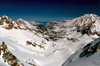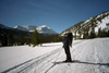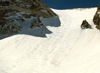 After reaching the top (12,680') we enjoyed the spectacular view of the valley, then tightened the boots, took a deep breath, and plunged down into the chute. Turn after turn we carved two meandering tele tracks into the chute. It was an exhilarating but exhausting fun which needed occasional breaks. Above Long Lake we met our friends from Oakland, and an hour later we were at the yurt and skied out together with Ken. The snow on the road was excellent and it took only 35 min from Mosquito Flats to the cars. It was another fine weekend of backcountry skiing.