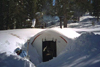 Rock Creek has it all : good access, beautiful scenery, plenty of snow, terrain for all skiing abilities, and a cozy hut for a basecamp. That is why we went back in March after our earlier trip in February. We had an interesting group of nine skiers, four from the Bay area, Tom McNicholas, Burt Rodgers, Peter Purgalis, Mike Udkow, and four from the SMS, Owen Maloy, Susan Loftus, Ken Kerner, Duncan Livingston, and myself. On Sat 7 AM we met at the road end (East Fork, CA Sno-Park), and skied up the snow-covered road toward Rock Creek Lodge. After a short stop-over we continued at an individual pace to Mosquito Flats (10,200') where we settled down in the yurt and in some tents. There was far more snow than a month earlier and the yurt was covered to the top of its roof (>6'). In the afternoon we toured Little Lakes Valley, forming groups with different ambitions. Some went to Treasure Lakes to ski the chute down to Long Lake, others enjoyed the scenic trail along and over the lakes. Sat evening we fired up the wood stove and cooked our dinners in the small but cozy yurt while the outside temperatures plummeted. The night was probably more peaceful for the snowcampers since in the yurt the snoring nearly shattered glass dishes.
